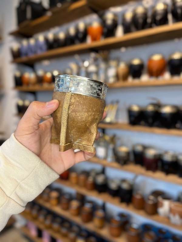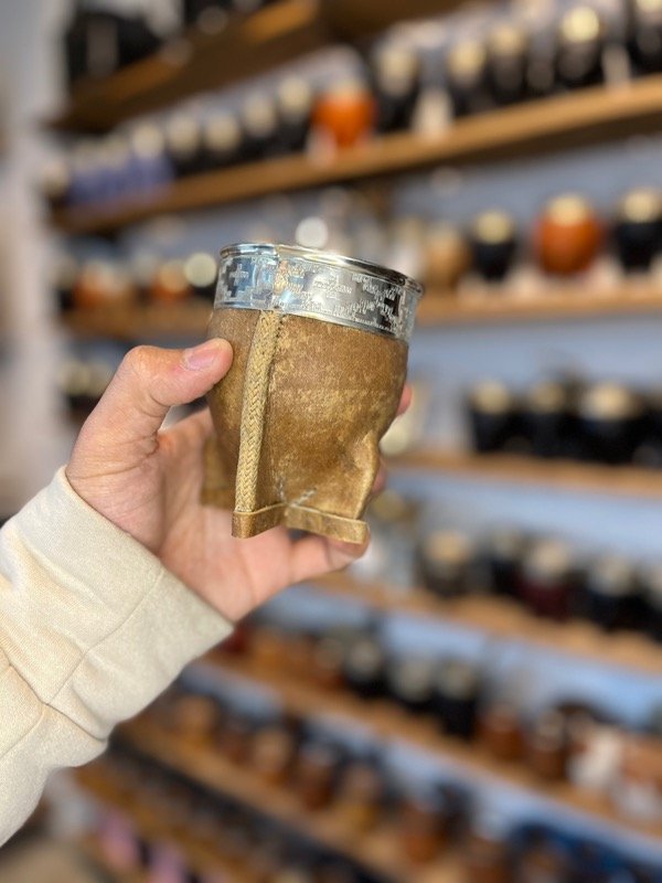 Un mate de excelencia, pensado para quienes buscan lo mejor de la tradición artesanal. Nuestro Mate Imperial está confeccionado con calabaza seleccionada, forrado en cuero crudo con costura en tiento y acompañado de virola y detalles en alpaca, logrando un estilo robusto, elegante y de gran presencia.